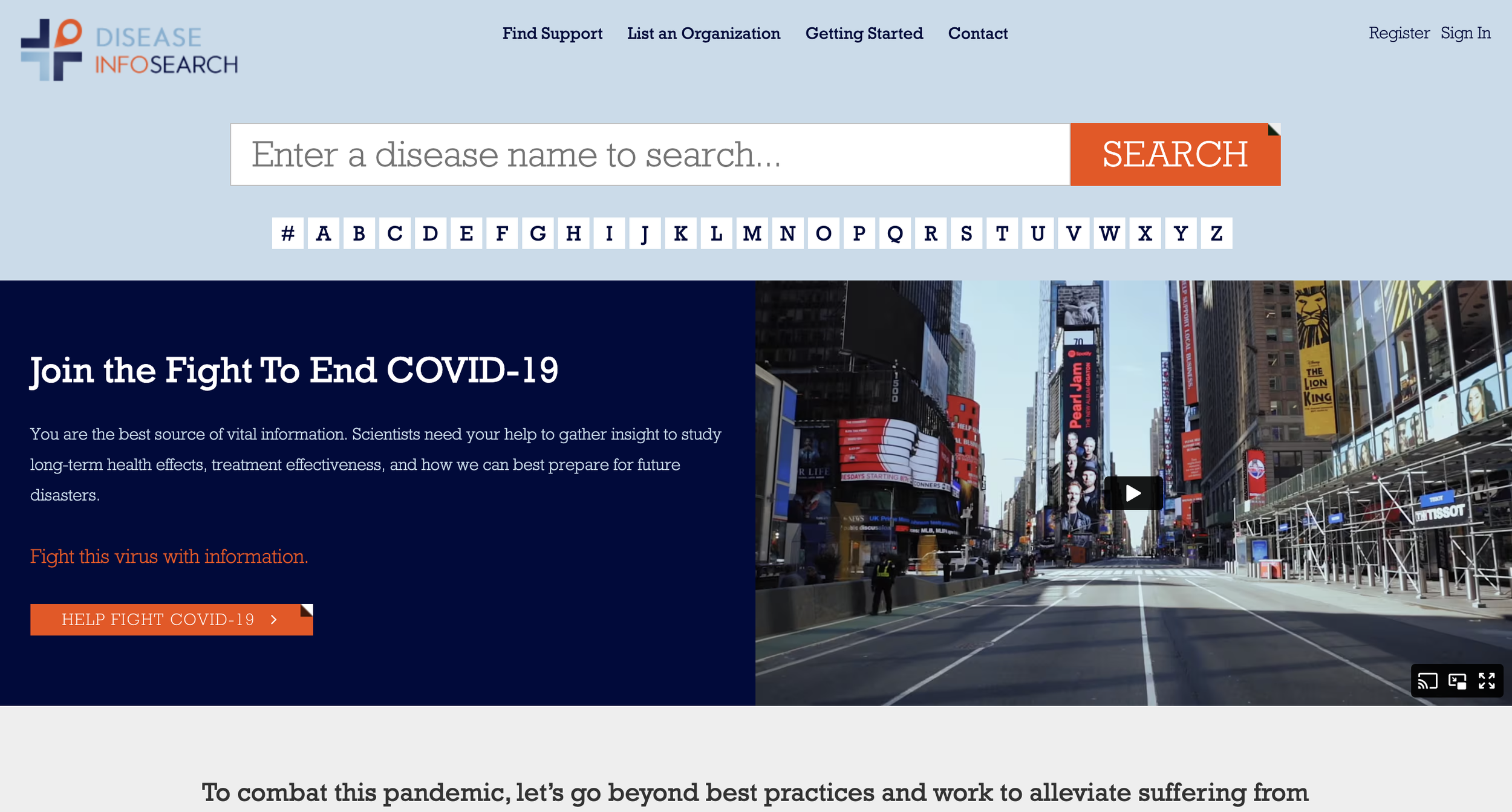 They own and manage various tools, including DiseaseInfoSearch, a database containing information aggregated from a variety of resources including journal articles, clinical trials, and news and events. Disease InfoSearch serves as a resource for curated and crowdsourced disease information to help individuals access quality and credible information.