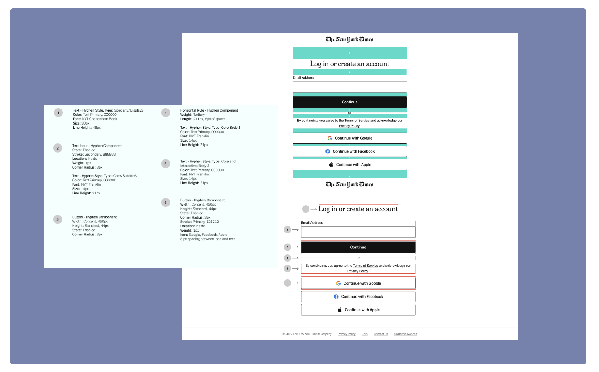 Four users validated the design in context of a user logging into the Times.