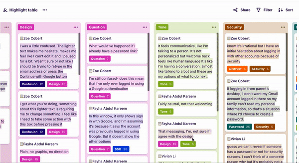 Below are some highlighted quotes. I organized my findings into Dovetail and created a list of insights based on user feedback.